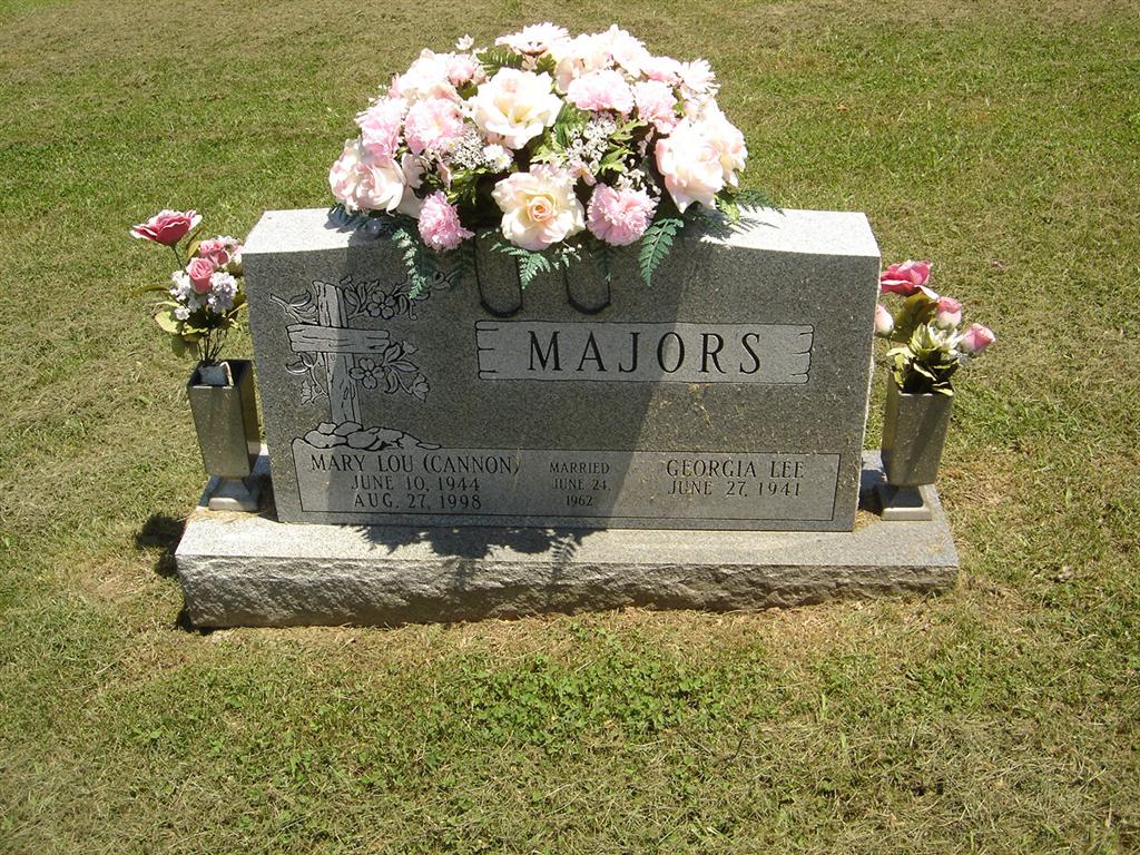 | MAJORS, Georgia Lee | June 27, 1941 | No Date | SSW: Mary Lou (Cannon) Majors - Inscription: "Married June 24, 1962" | Photo BCG and HS |