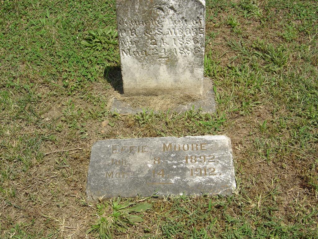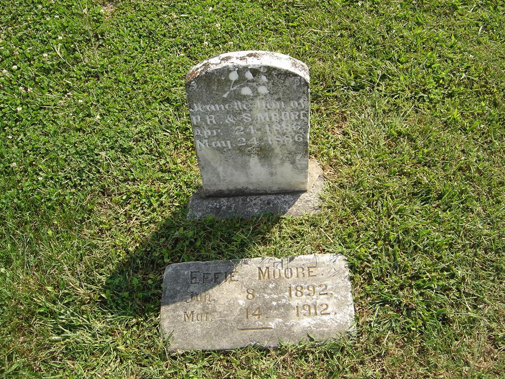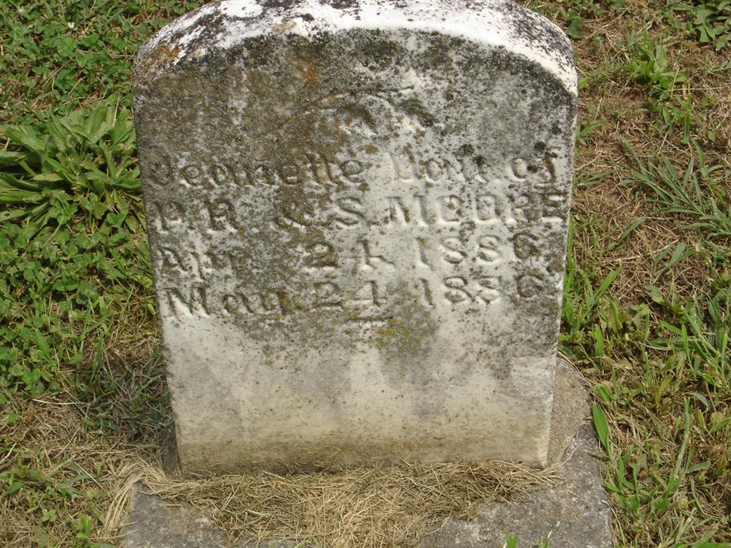 | MOORE, Jeanette | Apr. 24, 1886 | May 24, 1886 | Inscription: "Dau. of P. R. and S. Moore" - Research Note: Daughter of Peter R. Moore and Susan Jones. - Another Photo - Another Photo | Note Phyllis Long Photos BCG and HS |
