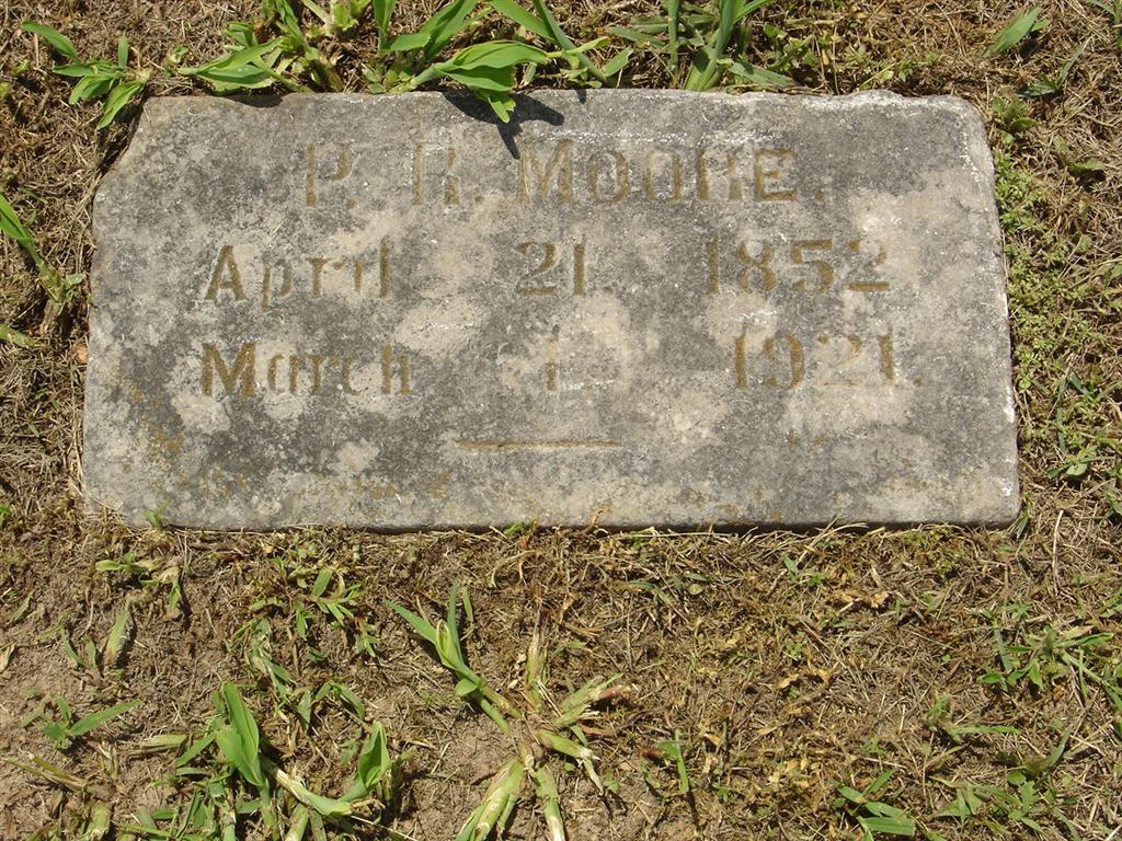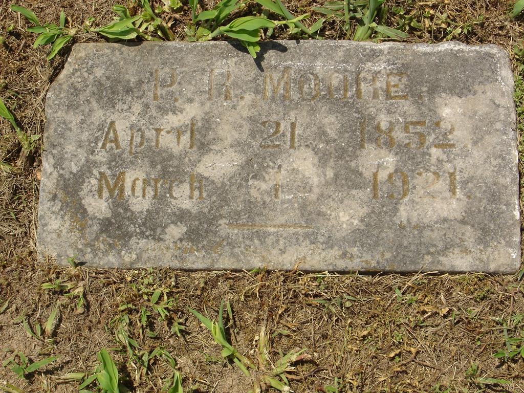 | MOORE, Peter R. | Apr. 21, 1852 | Mar. 1, 1921 | Research Note: October 14, 1909 Thursday, Cassville Republican - White Church News: P. R. Moore and sons Arthur and Herman, went to Sarcoxie last week, Wednesday to visit with Mr. and Mrs. Howell. Mr. Howell is very ill. - January 25, 1912, Thursday, Cassville Republican - Suburban News: Mrs. Myrtle Powell returned to her home at Sarcoxie after a pleasant visit with her parents, Mr. and Mrs. P. R. Moore, east of town. - August 21, 1913, Thursday, Cassville Republican - Mrs. A. F. Cox and family of Monett, Mrs. Lee Chapman and son of Webb City and Mr. and Mrs. Howell of Sarcoxie visited their parents, Mr. and Mrs. P. R. Moore, east of town last week. - August 19, 1915, Thursday, Cassville Republican - Personal and Local News: Mrs. Lee Chapman and little son of Webb City have been visiting Mrs. Chapman's parents, Mr. and Mrs. P. R. Moore east of Cassville. - Cassville Republican, Thursday, June 20, 1918 - Lem Moore of near Seneca visited his father and mother, Mr. and Mrs. P. R. Moore, northeast of Cassville the first of the week. Lem is farming on Little Lost Creek in Newton county and is doing well. He says that the crops in the county are looking very promising, that wheat was very good, however the rust damage it some. - Cassville Republican, Thursday, March 27, 1919 - Mrs. Myrtle Ash of Picher, Okla., visited her parents, Mr. and Mrs. P. R. Moore northeast of Cassville last week. Mr. Moore has been on the sick list. - Cassville Republican, Thursday, June 19, 1919 - Mr. and Mrs. P. R. Moore and grandson, Clifford Chapman, took dinner at the E. A. Frost home Sunday. - Cassville Democrat, Saturday, July 10, 1920 - Arthur Moore, of near Garfield, Ark., visited his parents Mr. and Mrs. P. R. Moore and friends near this city from Saturday to Monday. - July 17, 1920, Cassville Democrat - Rev. P. R. Moore preached at the Grove, Sunday, and left an appointment for the third Sunday in August. Everyone came that can and encourage Bro. Moore. - Brother's Obit - Moore Plot Stone - Another Photo - Another Photo | Online Newspapers Phyllis Long Photos BCG and HS |