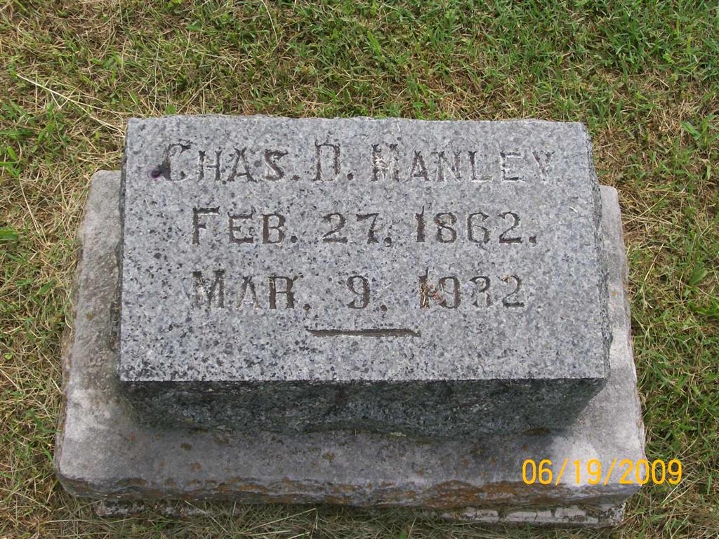 Research Note: His death certificate reads that his wife was Belle (Isabelle Goodnight) Manley and he was an insurance salesman. Son of William D. Manley and his first wife Elizabeth Bender. Lena A. Manley of Monett was the informant. Cause of death was suicide, gun shot wound through the head which happened in his office. - Wheaton Journal, Thursday, March 17, 1932 - Cassville Man Shoots Self Wednesday: C. D. Manley, well known Cassville citizen and insurance agent, shot himself in the temple with a revolver while seated in a chair at his desk about three o'clock Wednesday afternoon of last week. He had gone to his office, returning from the scene of a fire and within ten minutes was found in his chair. Medical aid was summoned and he died about an hour later. The bulled passed entirely through the top of his head and was later found on the floor of his office. The above report was given out soon after Manley was found shot, but it was later thought that some unknown person might have murdered him. The bullet ranged downward as if the gun was held higher than his head which would be almost impossible for him to hold the gun in this position and there were no powder burns around the wound. Also there was a lump on his jaw, apparently cased by a blow, and the back door was unlocked. These incidents and others caused some to believe that he did not kill himself. - Cassville Democrat, March 24, 1932 - SEVERAL HUNDRED ATTEND MANLEY FUNERAL FRIDAY AGED BOOSTER HAD MANY FRIENDS THRU OUT SOUTH-WEST MISSOURI: Funeral services for Charles D. Manley, who died in his office in Cassville, last Wednesday afternoon, were held at the Community Building in this city Friday afternoon and was one of the largest funeral's held here in many years. Services were in charge of by Rev. Patrick of the Cassville Christian Church and Rev. Dillion of the Methodist church, of which the deceased was a member. Not for some years has such a gathering of splendid citizenship been in our city for such an occasion, to pay their last love and respect to a man whose every thought was to do something that would progress his city, county and state. Charles D. Manley was a son of the late Mr. and Mrs. W. D. Manley, old time citizens of this city and county. He was born at Hackett City, Ark., Feb. 2, 1862 and was 70 years and 12 days old at the time of his passing. When he was a mere babe his excellent mother carried him on horseback, as they traveled from their Arkansas home to East St. Louis, Illinois. They passed through Cassville on their trip and camped over night in a sheep shed near Washburn, at which time one of Mrs. Manley's horses was stolen. Mr. Manley was married to Belle Goodnight on December 24th, 1884. Three children were born to this union, 2 sons and one daughter who are: Lennie Manley, Monett, and Miss Elaine Manley of Tulsa, Okla. Another son preceded his father in death several years ago. Mr. Manley came to Cassville in the year of 1886, where he engaged in the insurance and real estate business with his father whom he succeeded in the business at his death, many years ago. He served Barry county as clerk of the county court two terms from 1902 to 1910. He had also served the City of Cassville as Mayor several terms and was a most progressive official. "The Old Wagon" as he was called by his many friends, was one of the biggest hearted men in this county. Never did he turn a deaf ear to pleas of the hungry or needy. His purse was always open in a big way to any who were in distress or for any other community enterprise or progress. Never did he falter in his efforts to progress his city, county and state. An unselfish worker in every way and it was largely through his untiring efforts that Barry county enjoys such excellent highway facilities as it has today. His activities were not confined to any one community, but to all alike, just so the attempted project was in his county or state. "The Old Wagon" was a man who had many friends, and very few enemies; any man who has taken important parts in public life for the many years as this great booster, could not maintain the friendship of all; but at that, those who would be classed as his enemies, admired him, and have often been heard to so state. The night was never too stormy or dark but that he gladly and willingly responded to the sick and distressed. In speaking of this prominent citizen, the Springfield Press, in a recent issue, said - Down at Cassville business men of the town refer to Charles D. Manley as "The Wagon," because he carries the burdens of the community. If there is a fund to be raised or committee to be organized, they call on "Wagon" and although some of the roads have been exceptionally rough he has never failed to deliver. He has done more to advertise Cassville and Barry county than any other citizen. His hobby is collecting photographs of important gatherings and historic events. These pictures he used for advertising purpose. Charley Manley was a member of the Methodist church, the Masonic Lodge, W. O. W., and M. W. A. lodge. During the several years he served as president of the Cassville Commercial Club, he worked day and night for his town and county and many splendid ideas were originated through his brilliant mind which meant much to our city and county. Mr. Manley was with W. H. (Coin) Harvey when the Ozark Trail was routed from St. Louis to Las Vegas, N. M., in 1916. On this trip, members of the routing party paid their own expenses and blazed the trail for a good roads program in the middle west. Mr. Manley said highway 66 now follows a large portion of the original route. A quartette composed of Mrs. John Ray, Miss Pauline Hisey, Clinton Blythe and J. W. Hisey, rendered beautiful music at the service. A solo, "A Perfect Day," was sung by Mrs. John Ray, accompanied by Mrs. Troy Wilson at the piano. Many beautiful floral emblems were received by the bereaved family from friends and admirers at home and afar as an expression o