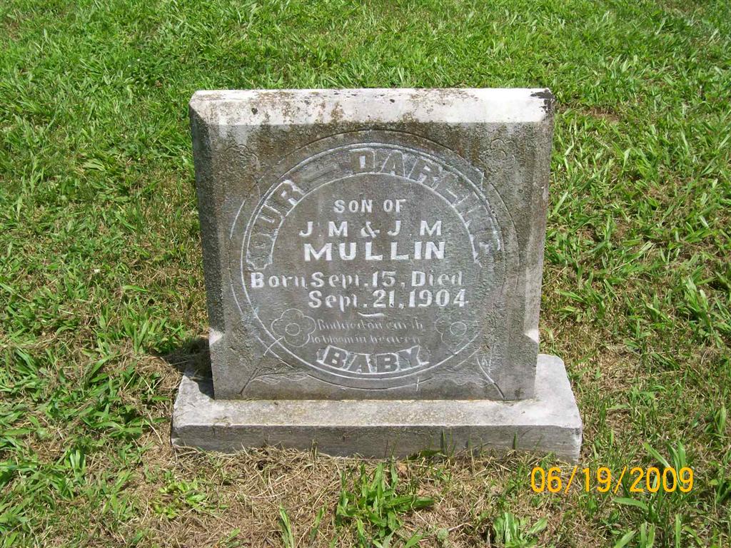 | MULLIN, Infant | Sept. 15, 1904 | Sept. 21, 1904 | Inscription: "Our Darling Son of J. M. and J. M." | Photo BCG and HS |