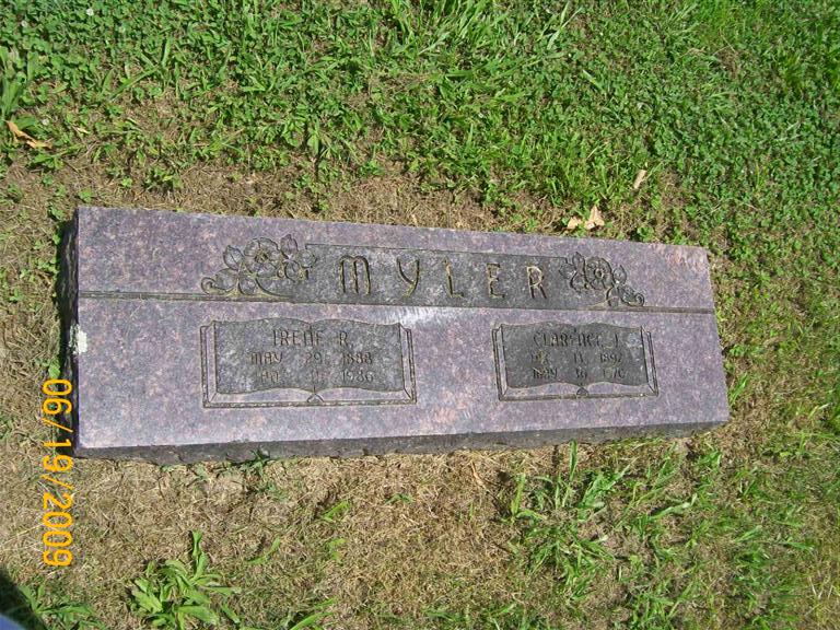 | MYLER, Irene Ruth (RICHARDSON) | May 29, 1888 | Jan. 11, 1986 | SSW: Clarence J. - Research Note: Clarence James Myler, age 67, married Irene Ruth Richardson on Dec. 25, 1959 in Kansas City, Jackson Co., MO. Richardson most likely not her maiden name. | MO Marriage Records Phyllis Long Photo BCG and HS |