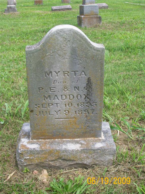 | MADDOX, Myrta | Sept. 10, 1895 | July 9, 1897 | Inscription: "Dau. of P. E. and N. J." | Photo BCG and HS |