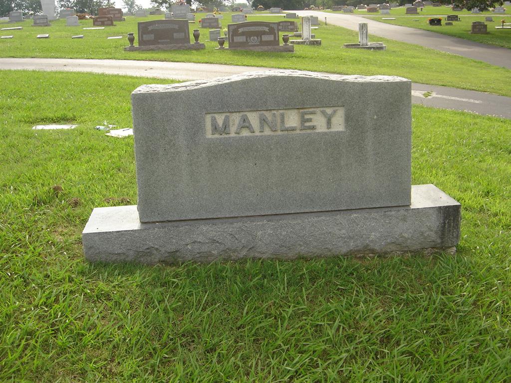 Research Note: According to her death certificate she was a daughter of James S. and Jane (Boone) Plattenberg. Bon Manley was her husband. Carroll Chenoweth, Cassville, MO, was the informant. - Another Photo - Manley Plot Stone | Death Certificate Donna Cooper Photos BCG and HS |