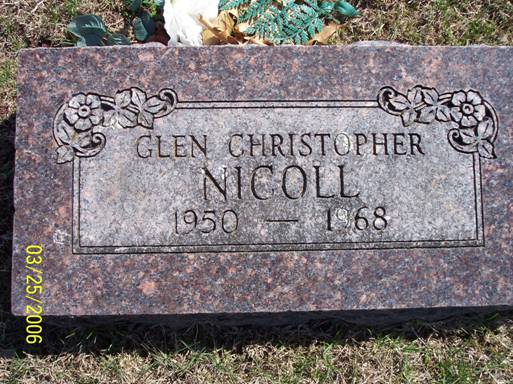 | NICOLL, Glen Christopher | Mar. 29, 1950 Cassville, Barry Co., MO |