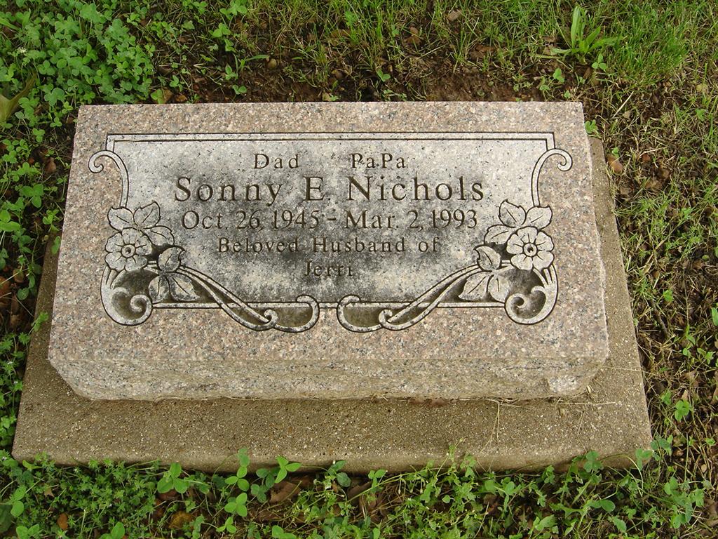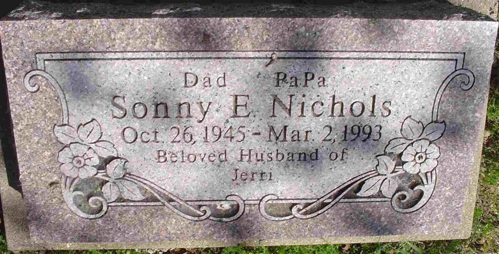 | NICHOLS, Sonny E. | Oct. 26, 1945 | Mar. 2, 1993 | Inscription: "Beloved Husband of Jerri" - Another Photo | Photo Donna Cooper Photo BCG and HS |