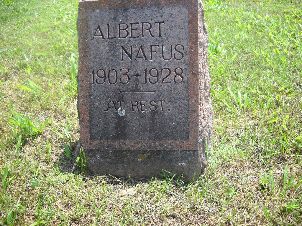 | NAFUS, Albert G. | 1903 | 1928 | Inscription: "At Rest" - Research Note: Son of Thomas Benton Nafus and Almeda Josephine Weldy. | Census Phyllis Long Photo BCG and HS |