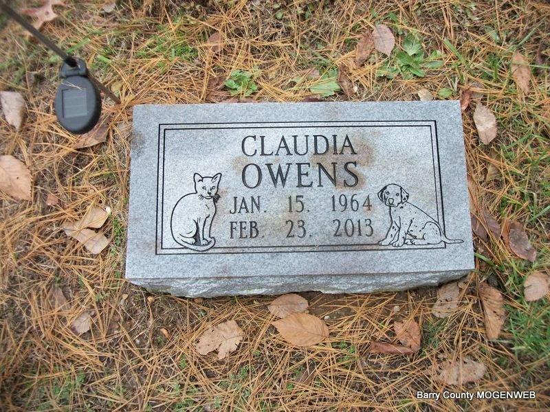 Research Note: Claudia Owens, age 49, of Purdy, formerly of Wheaton, died on Feb. 23, at Red Rose Health and Rehab Center in Cassville. Graveside services will be held at 1 p.m. on Friday, March 15, at Oak Hill Cemetery in Cassville. Daughter of Eugene A. Heintz and Mabel Schuefeli. Her husband was Christopher Merl Owens, born 1956 and died 2012. | White Funeral Home Phyllis Long Photo Diana Cope |