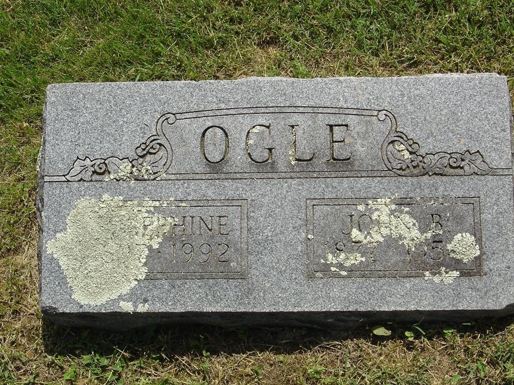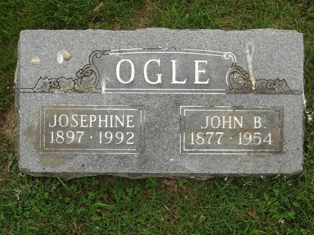 SSW: Josephine - Research Note: His death certificate reads that his father was Jacob Wesley Ogle and that his mother was Elizabeth Ann Dunlap. Josephine Ogle was given as his wife's name. He was a diabetic and was age 76 when he died. He lived on Harold St. in Cassville, MO and was listed as a farmer. Mrs. Charles Bull, Branson, MO, was the informant. - His first wife was Anna Isabelle Blankenbecker. - Another Photo | Death Certificate Donna Cooper Census Phyllis Long Photos BCG and HS |
