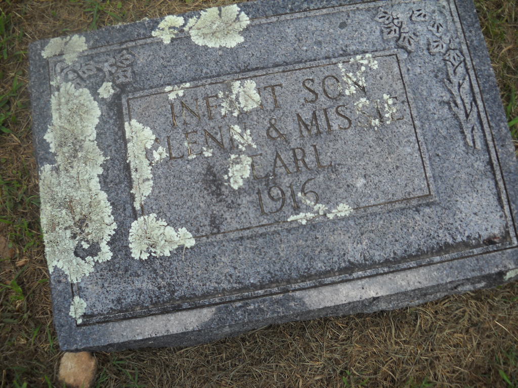 | PEARL, Infant | 1916 | 1916 | Inscription: "Son of Glenn M. and Missie" | Note Donna Cooper Photo BCG and HS |