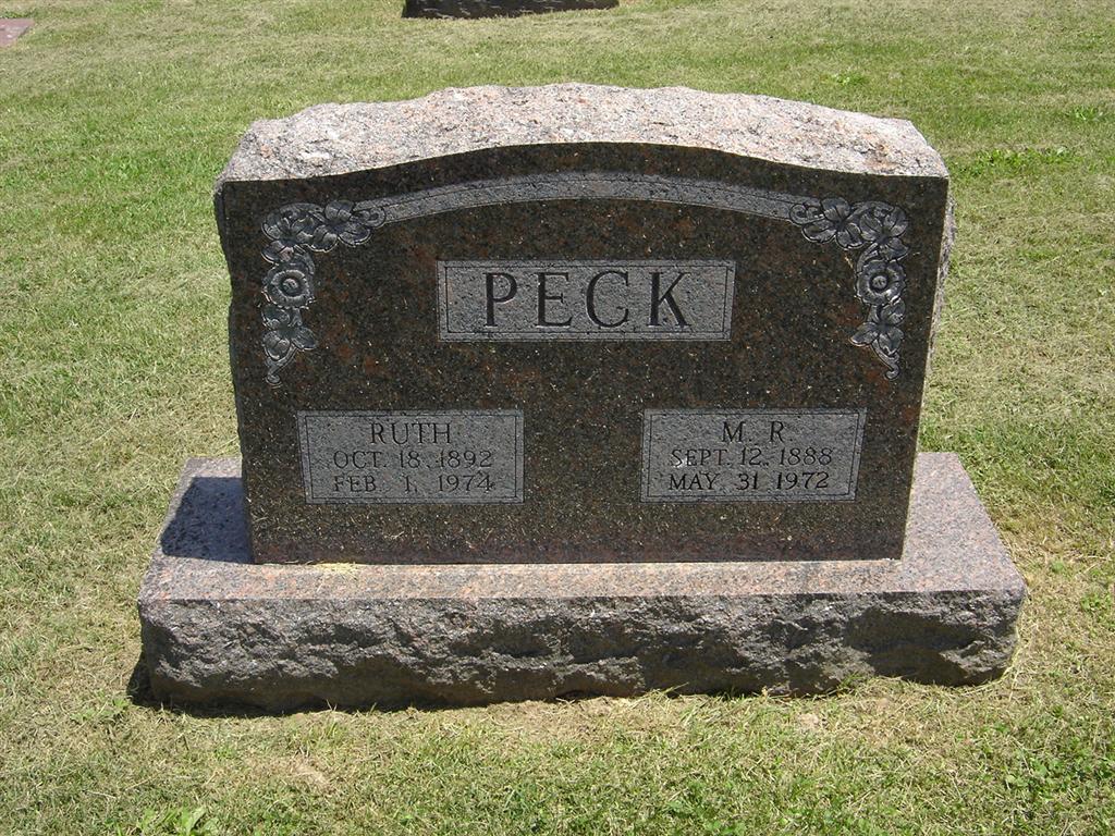 | PECK, Ruth (WHEELER) | Oct. 18, 1892 | Feb. 1, 1974 | SSW: Manford Ray - Research Note: Daughter of Theodore Egbert Wheeler and Ann Mary (Kritser) (Wheeler) Harvey. Manford R. Peck, age 36, married Ruth Wheeler, age 32, on May 22, 1925 in Jackson Co., MO. | MO Marriage Records Phyllis Long Photo BCG and HS |