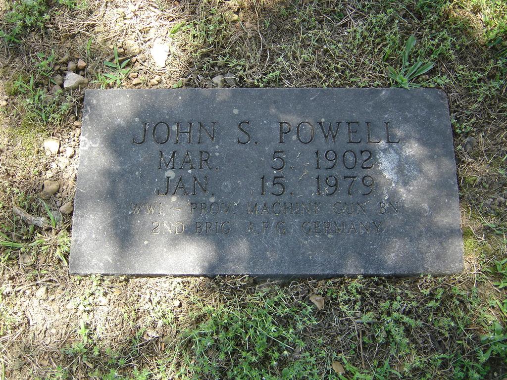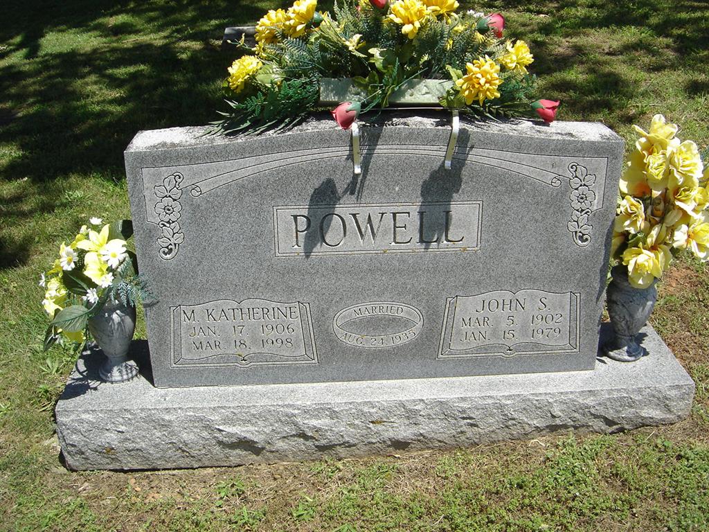 | POWELL, John Samuel | Mar. 5, 1902 | Jan. 15, 1979 | SSW: M. Katherine - Inscription: "Aug. 24, 1935" - Research Note: Son of Everett Hughes Powell and Nancy Elizabeth Woodward. - Another Stone | Census Phyllis Long Photos BCG and HS |