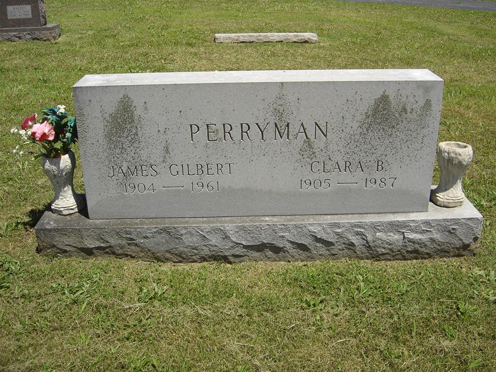 | PERRYMAN, Clara B. (JEFFRIES) | Oct. 24, 1905 | Aug. 1987 | SSW: James Gilbert - Research Note: Daughter of Cass Jeffries and Cora Huff, both buried at Oak Hill Cemetery. | Census Phyllis Long Photo BCG and HS |