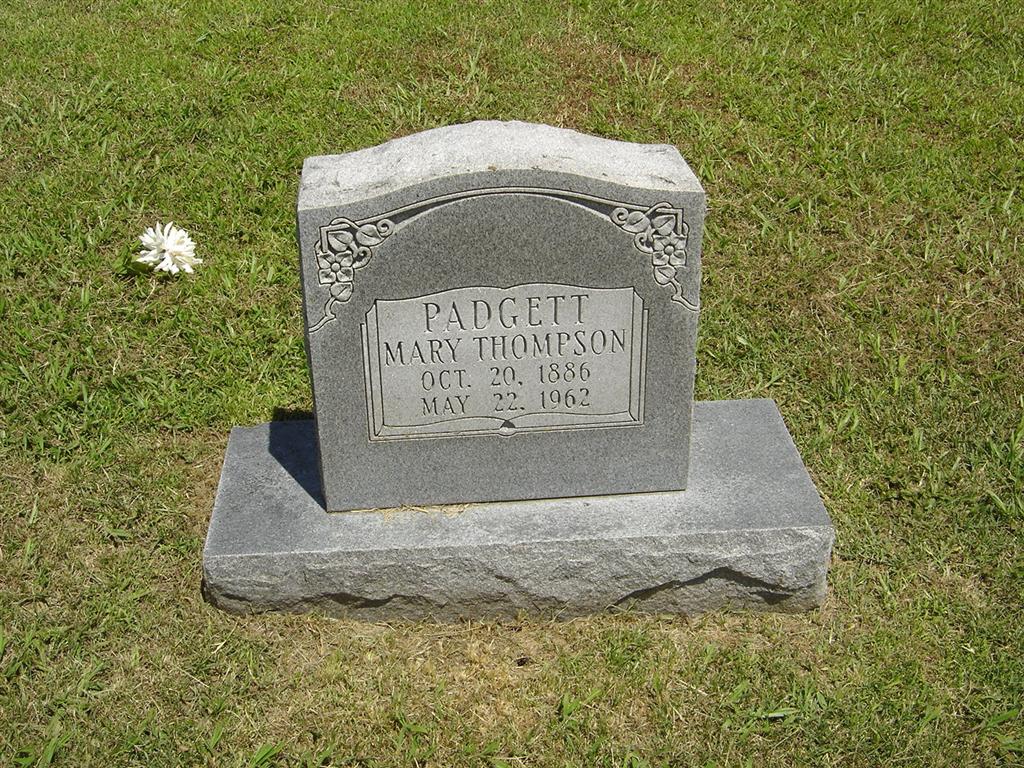 Research Note: She was a daughter of Benjamin Franklin Thompson and Caldona Frances Dunlap. Wife of John Padgett. Kate Thompson of Cassville, MO was the informant on the death certificate. John Padgett married Mary Thompson, age 24, on Oct. 24, 19155 in Barry Co., MO. | Family Knowledge, Martha Thompson Death Certificate MO Marriage Records Phyllis Long Photo BCG and HS |