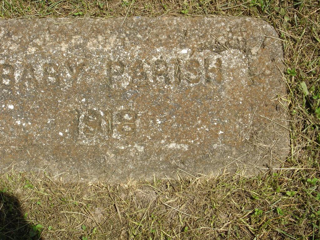| PAR(R)ISH, ___ | No Date | 1938 | Research Note: Homemade stone - not very readable. It is next to Baby Parish's stone. Next to the Henry Parrish stone. Perhaps an old stone for him? | Photo BCG and HS |