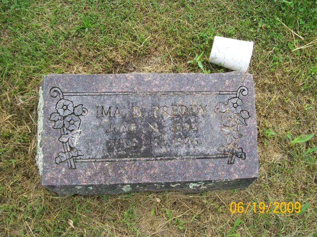 | PREDDY, Ima D. (WHITE) | June 13, 1894 | June 13, 1976 | Research Note: Daughter of Joseph White and Lovina M. Robbins, both buried at Oak Hill Cemetery. - Cassville Republican, Thursday, May 22, 1919 - Jess Preddy and Miss Ima White were married Sunday afternoon, May 18, at the home of Rev. and Mrs. Otis Cox, in the presence of relatives and a few friends, Rev. Cox officiating. Mrs. Preddy is the youngest daughter of Mr. and Mrs. Joe White. She was born and reared in Cassville. She graduated in a few years ago from the Cassville High school and since that time has been with the White Jewelry Co. Store. Mr. Preddy has been in Cassville since his discharge from the military service. He is employed at Fawver and Padgett's. The many friends of these excellent young people and extend wishes for a long, happy and useful married life. | Online Newspapers Phyllis Long Photo BCG and HS |