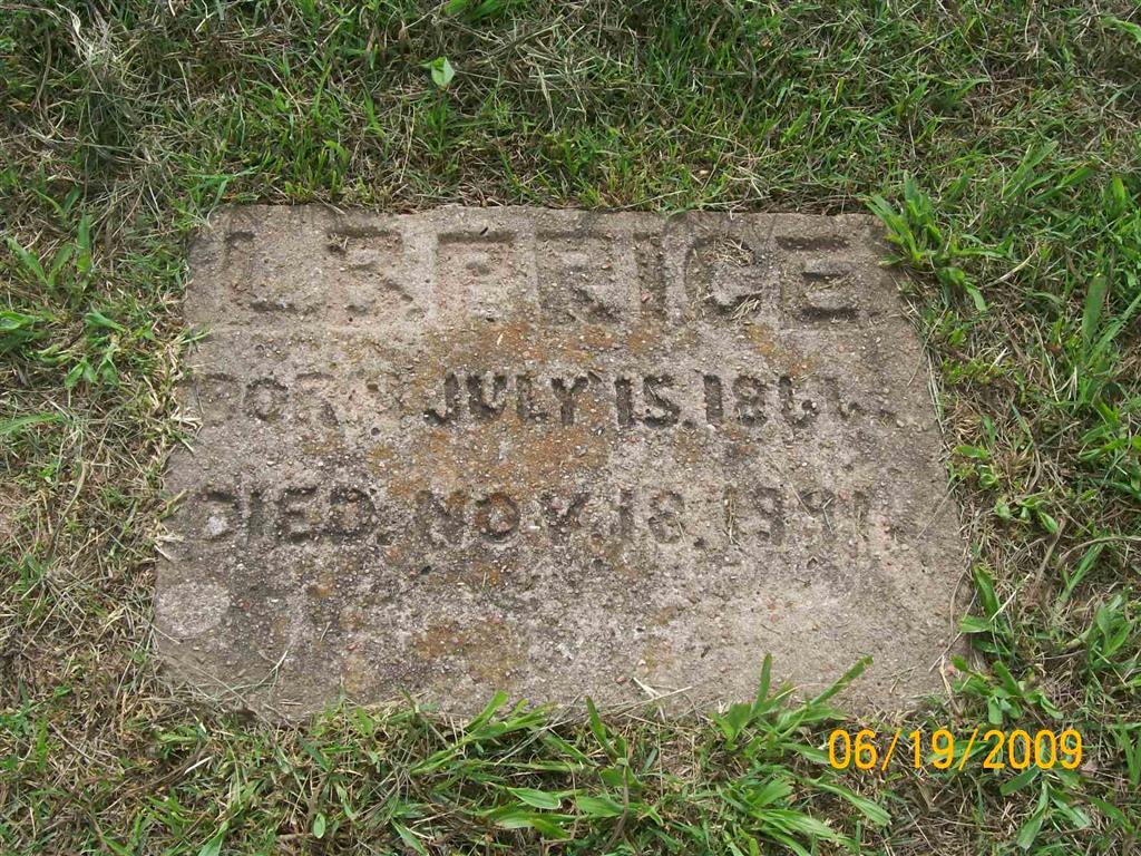 | PRICE, Little Berry | July 15, 1866 | Nov. 18, 1941 | Research Note: His father was Robert Price and his mother Mary Jane Shepherd. Little B. Price, age 25, first married Mary E. Vanhorn, age 21, on July 24, 1891 in Barry Co., MO. At age 35, he married Aug. 21, 1901 in Barry Co., MO to Dora Hankins, age 21. 1910 census confirms that he was married twice. - January 6 1912, Cassville, Democrat - Alex Price of Fayetteville, Ark. visited his sister and brother Berry Price and Mrs. Vanis Anderson and families last week. Many years ago, Alex lived in and around Cassville, and had his "ups and downs in life". - Alex's "Ups and Downs" - Jan. 7, 1905, Saturday, Cassville Democrat - On Dec. 30, 1904, near Fayetteville, Ark., Alex Price and Squire Wallace became engaged in an altercation, Wallace wailing a club on Price when the latter's son, Will Price, shot Wallace, killing him. Jan. 2, Alex Price surrendered and was committed to jail in default of bond and Will Price has not as yet been captured. - Homemade Stone | Census MO Marriage Records Census Online Newspapers Phyllis Long Photo BCG and HS |