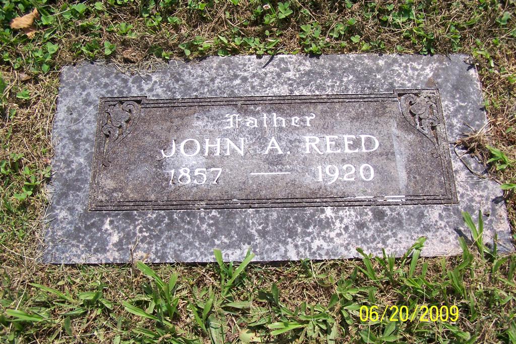 Research Note: He was a son of Jonathan and Mary Ann (McCoskey) Reed. - Cassville Democrat, March 27, 1920 - J. A. Reed Dies Suddenly: We are born to die and there is no life without death, and a return to mother earth from whence we came, but the spirit of man is waited to eternal and happy life, as a reward as he has lived and produced fruits that ye may know what he has propagated and cultivated in his lease of life, while living as a tenant in this world of sorrow and sadness. John Anderson Reed was born Feb. 11, 1857, near Lexington, Ky., and was a son of late Mr. and Mrs. Jonathan Reed former well known citizens of near this city. He came with his parents to Barry County when a young man and has lived in this vicinity since. In 1884, he and Miss Rosatha Twillinigear were married and three daughters and three sons were born of this marriage, two daughters and two sons survive the father, those living are Mrs. Lillian Bozarth, Mrs. Mayme Tedford and Hunter Reed of Tulsa, Okla., and Clearance Reed of the U. S. Navy. The wife and mother died April 9, 1919. John A. Reed died of apoplexy, at Owl Drug Store, where he had gone for treatment, about 6:30 p.m., March 19, age 63 years, 1 month, 9 days. He left three brothers George and James of near Purdy, and Joseph of Butterfield, and four sisters. He had been a member of the Christian Church for many years. The remains were cared for by the Horine Undertaking Co., and later conveyed to the home of his nephew Burl Reed on North Main Street. At 3:00 p.m., March 20, Rev. J. T. Brattin conducted funeral services at the Reed home, after which the remains were interred in Oak Hill Cemetery. John Reed had many friends who will regret to learn of his death. | Photo BCG and HS Online Newspapers Phyllis Long |