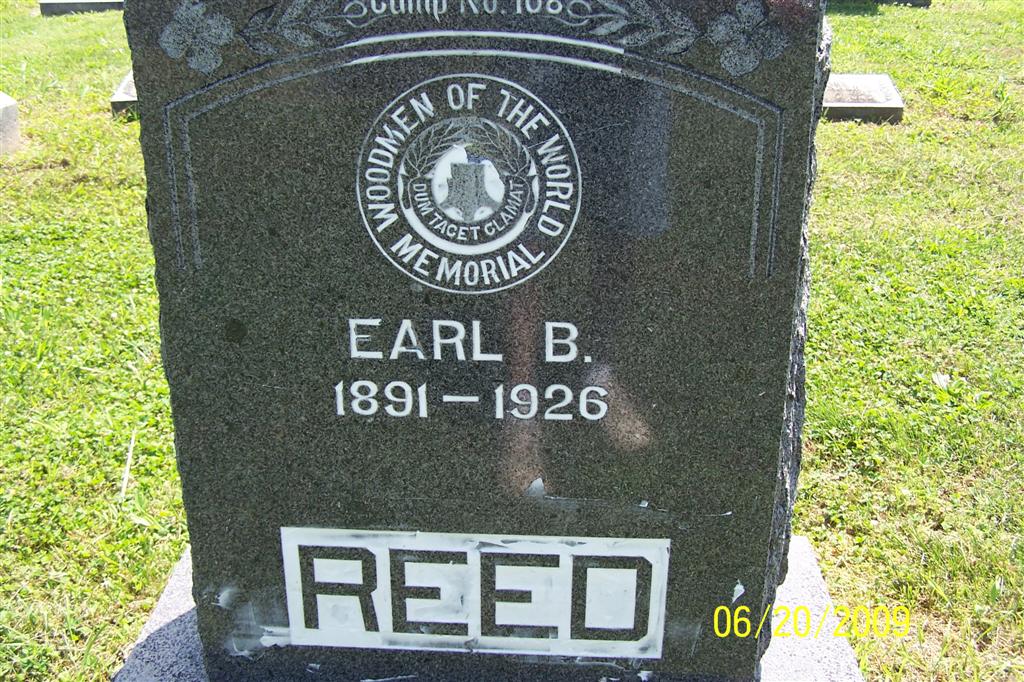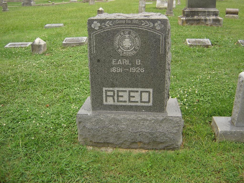 Research Note: He has a Woodmen of the World Memorial. The death certificate reads that he was born in 1892 and not 1891 as the stone reads. It reads that he was a farmer, his father was Sam A. Reed, born KY, and his mother was Martha Bayless, born Barry Co., MO. The cause of death was manic depressive insanity. He was age 33 years, 7 months and 29 days old when he died. Mrs. E. B. Reed was listed as his wife's name. State Hospital records served as the informant. - Cassville Republican, Thursday, April 3, 1919 - Licenses to Wed: Earl Bayless Reed, 27, Cassville and Gladys McComas, 20, Purdy. Gladys second married Grover C. Willmoth and died in 1968 and is buried at Eller Flat Cemetery, Hemphill Co., TX. - 1910 United States Federal Census, Flat Creek, Barry, Missouri - Samuel A. Reed, 61 Martha E. Reed, 43; Clyde W. Reed, 20; Burrell M. Reed, 18; Earl B. Reed, 18. - Another Photo | Photos BCG and HS Death Certificate Donna Cooper Census Online Newspapers Phyllis Long |