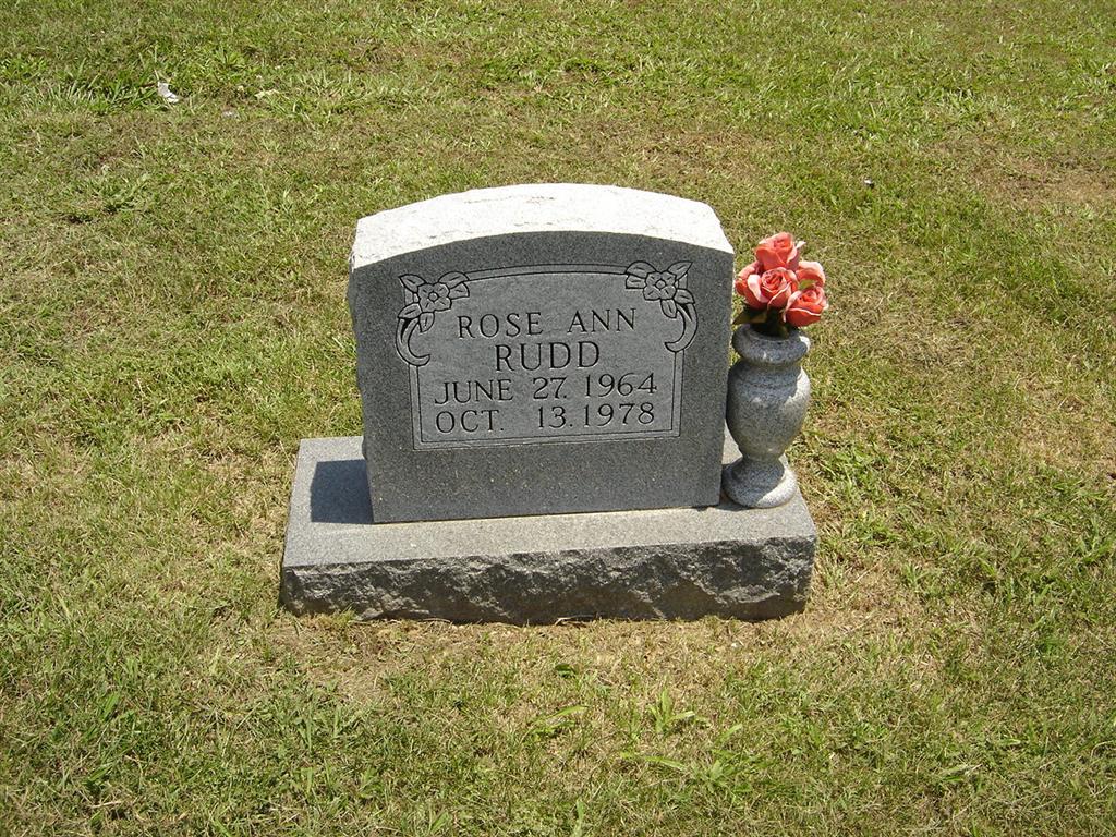 | RUDD, Rose Ann | June 27, 1964 | Oct. 13, 1978 | Research Note: She is buried near Dr. James and Willa Don Rudd and next to Ward Douglas Rudd. She was a daughter of Dr. James and Willa Don (Graves) Rudd. | Father's Obit Phyllis Long Photo BCG and HS |