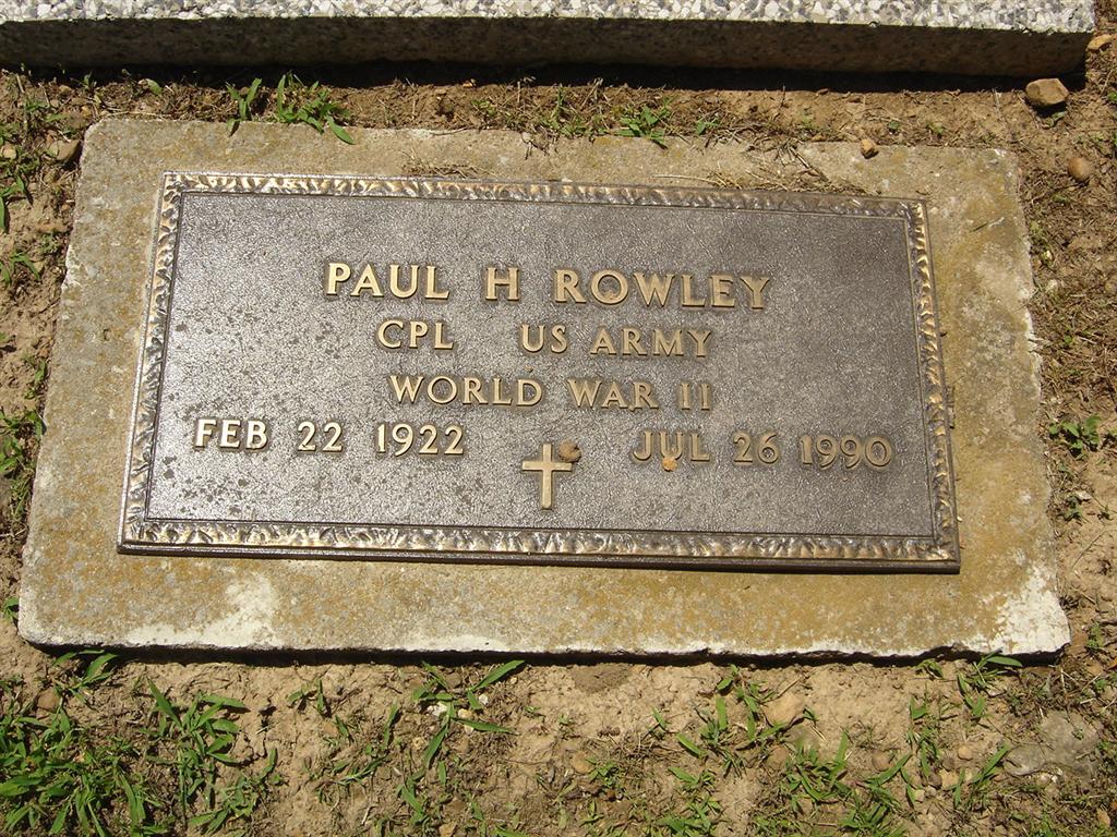 July 26, 1990 | Research Note: Son of Asa C. Rowley and Cressie L. Hutchens. His wife was Lula Lewis. - Military Stone Inscription: "CPL US ARMY WORLD WAR II" - Another Photo | SS Claims Index Phyllis Long Photos Donna Cooper Photos BCG and HS |
