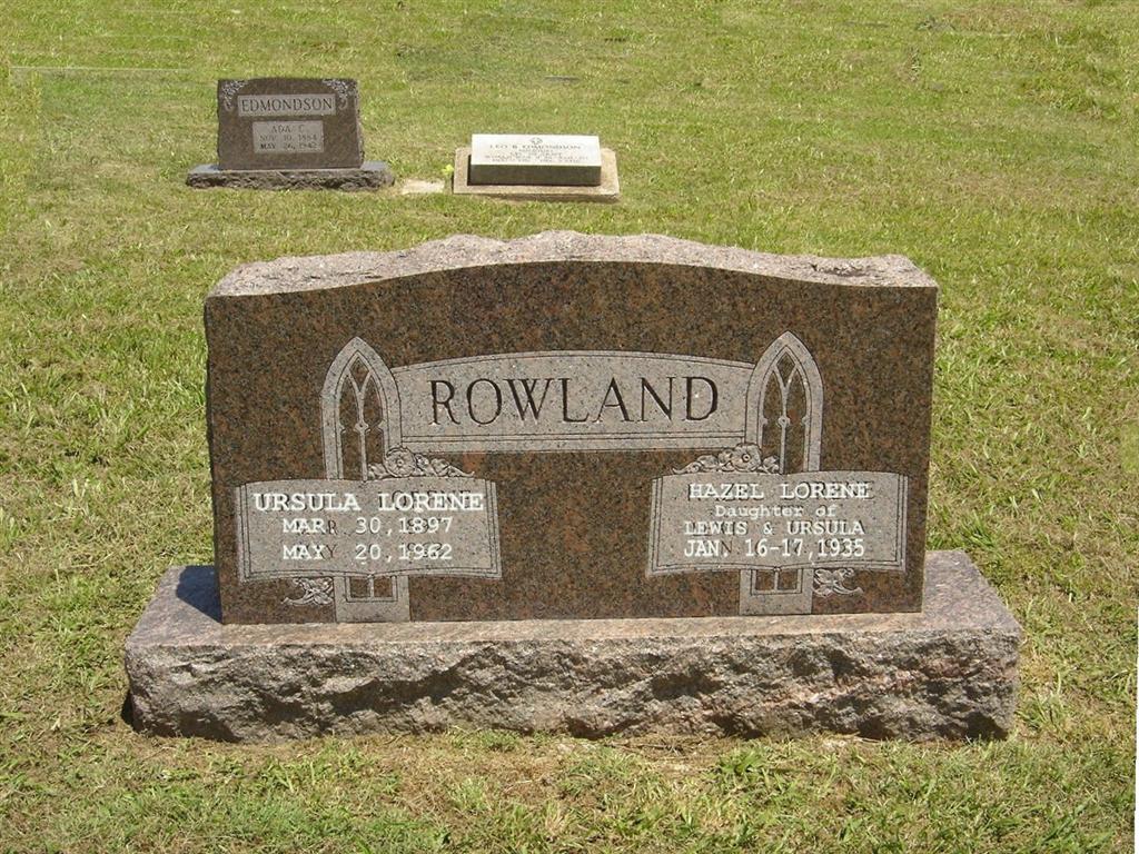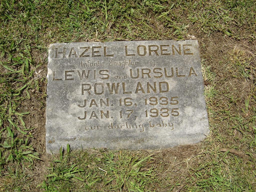 | ROWLAND, Hazel Lorene | Jan. 16, 1935 | Jan. 17, 1935 | Inscription: "Infant Daughter of Lewis and Ursula Rowland" - Another Stone - SSW: Ursula | Photos BCG and HS |