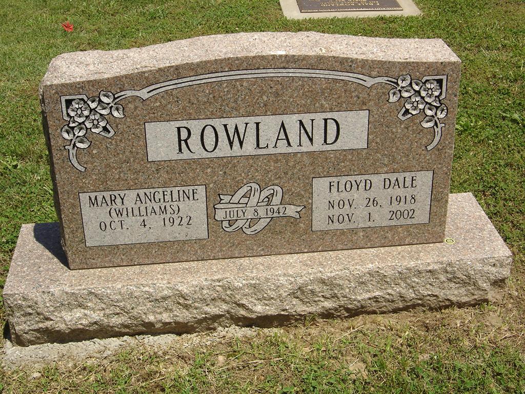 | ROWLAND, Mary Angeline (WILLIAMS) | Oct. 4, 1922 | No Date | SSW: Floyd Dale - Inscription: "July 8, 1942" - Research Note: Daughter of Horace Raymond Williams and Mary Grace Buzzetti. | Census Phyllis Long Photo BCG and HS |