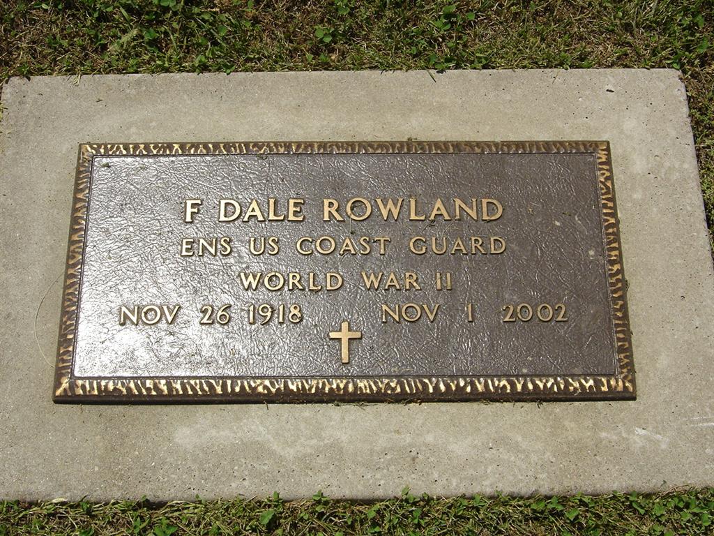 SSW: Mary Angeline - Inscription: "July 8, 1942" - Research Note: Son of Lewis and Ursula (Hunt) Rowland, Coast Guard veteran of World War II. - Military Stone - Inscription: "ENS US COAST GUARD WORLD WAR II" | Monett Times Nov. 4, 2002 Mary Homesley Photos BCG and HS |