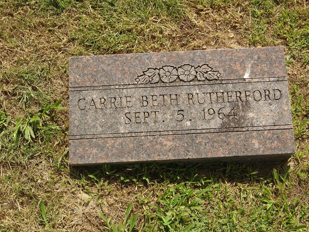 | RUTHERFORD, Carrie Beth | Sept. 5, 1964 | No Date | Research Note: Stone has one date on it. Could be a death date. | Photo BCG and HS |