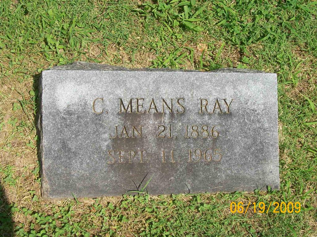 Research Note: He is buried in the Pharis plot. His mother was a Pharis. Son of Charles Ray and Jennie Pharis. His wife was Jewett LeCompte. She was the daughter of James William LeCompte and Mary Jane Ault. She married Charles Means Ray on June 19, 1912, died in 1974 and buried at Washburn Prairie Cemetery in the LeCompte plot. Bob Mitchell of Cassville, MO was the informant on the death certificate. - Nov. 7, 1903, Saturday, Cassville Democrat - Means Ray and two little sisters, Bland and Catherine, visited their cousin, Mrs. Will Munday, and family of Galena, Kan., last and this week. - June 20, 1912, Thursday, Cassville Republican - Miss Jewette LeCompte and Mr. Means Ray were married Wednesday afternoon at 3:30 at the home of the bride's parents, Mr. and Mrs. J. W. LeCompte. The bride is a daughter of Mr. and Mrs. J. W. LeCompte. She is a graduate of the Cassville High School and of the Missouri State University. She is highly educated and cultured and her many graces fit her well for the new relations upon which she has entered. The groom is a son of Mr. and Mrs. Charles Ray and is a young man with ability and ambition. He is editor of the Cassville democrat and is gaining prominence in his profession. - April 17, 1913, Thursday, Cassville Republican - Means Ray, associate editor of the Cassville Democrat has resigned his appointment to the position as deputy Inspector of Petroleum Olis [Oil?] and has accepted the position as chief clerk of the state Insurance Department at Jefferson City. Salary $2,000 per annum. He assumed his duties this week. - Cassville Republican Oct. 9, 1919 - Mrs. Means Ray returned to Jefferson City Saturday following an extended visit with her parents. Mr. and Mrs. J. W. LeCompte. - Cassville Democrat, August 28, 1920 - Judge and Mrs. Fred Williams of Jefferson City spent Sunday night in this city as the guest of Mrs. Means Ray at the home of her parents, Mr. and Mrs. J. W. LeCompte on their way to Roaring River Spring, where the Judge will take a much needed rest from the arduous duties on the Supreme Court bench. He is the Democratic nominee for reelection and the voters of their state can do no better than to re-elect him, because of his eminent qualifications and able decisions rendered. | Death Certificate Online Newspapers Phyllis Long Photo BCG and HS |