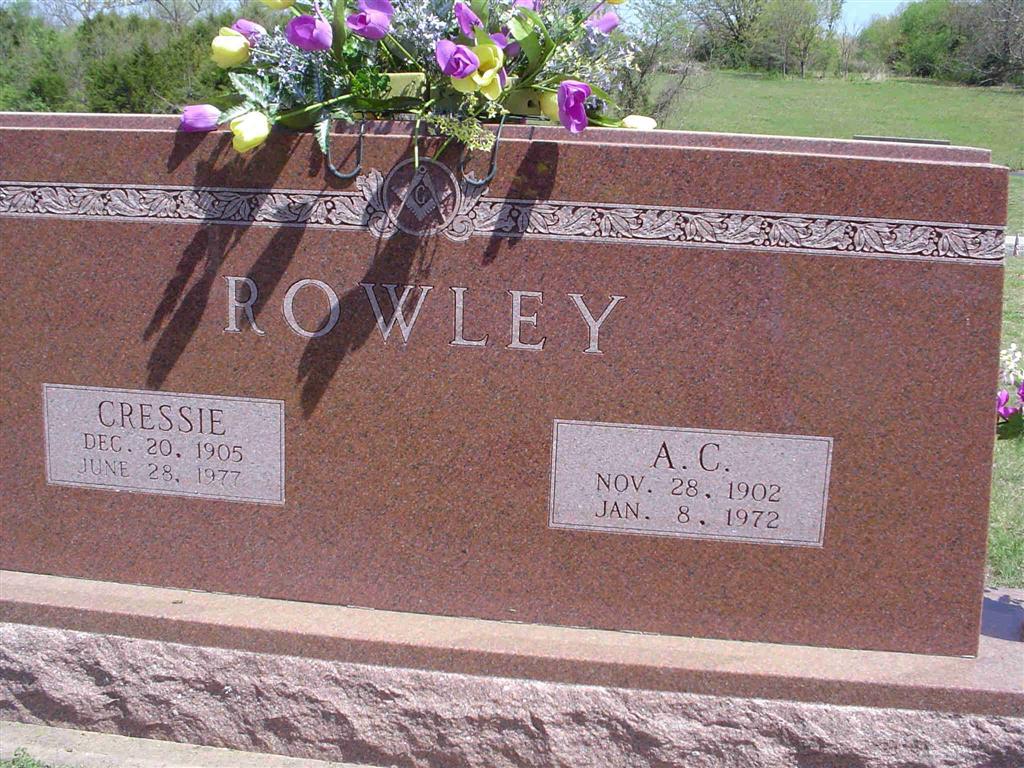 | ROWLEY, Asa C. | Nov. 28, 1902 | Jan. 8, 1972 | SSW: Cressie - Research Note: Joseph Freeborn Rowley and Adeline Feby (Wyrick) (Rowley) Walden. They are buried at Rowley Cemetery. - Another Photo | Census Phyllis Long Photo Donna Cooper Photo BCG and HS |