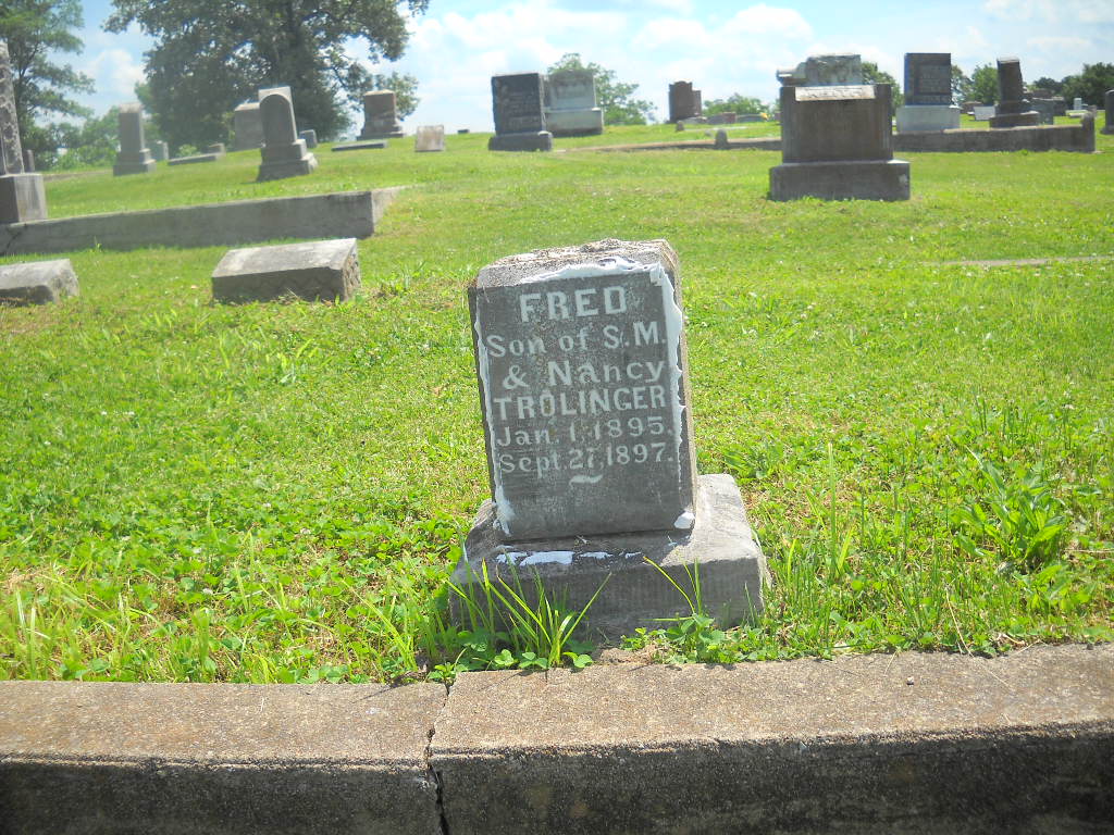 Research Note: He married Carrie (Palmer) (Trolinger) (Linn) Smith about 1904, buried at Mineral Springs. Still living with his mother in the 1900 census. Son of James N. and Jennie (Trott) Trolinger. Civil War Veteran, Union. He filed for his pension on Apr. 7, 1891. Carrie filed for her widow's pension on Oct. 25, 1916. - March 19, 1914, Thursday, Cassville Republican - Wm. J. P. Trolinger, one of Barry County's excellent citizens, died Thursday morning, March 12, 1914, at his home in the Forest Grove locality. For several weeks he had been suffering from the growth of a tumor to which he gradually succumbed. The deceased was born in Benton County, Ark., June 22, 1844. He was a son of the late Mr. and Mrs. James Trolinger who at one time resided in Cassville. When a young man he answered the call of the county and became a member of the 46th Missouri Infantry, Company D. After his service as a veteran of the Civil War, he made his residence at Verona and Cassville. In 1904 he married Mrs. Carrie Smith who survives. He also leaves two brothers, Thomas Trolinger of Washburn Prairie and S. M. Trolinger of Cassville. Interment was made Friday afternoon in the Oak Hill Cemetery, after short funeral services conducted at the grave. - March 12, 1914, Thursday, Cassville Republican - Wm. Trolinger, of the Forest Grove locality, who has been sick for several weeks is reported to have but little chance for recovery today, Wednesday. Mr. Trolinger is an old citizen of this county and highly respected by his acquaintance. - March 19, 1914, Thursday, Cassville Republican - Washburn Prairie News: T. J. Trolinger and family and Mrs. Myrtle Meador attended the funeral of Mr. Trolinger's brother at Cassville Friday. - John Trolinger and Ed Woods of Aurora attended the funeral of Wm. Trolinger, Friday. - Trolinger Stones | Online Obit Online Newspapers Phyllis Long Photos BCG and HS |