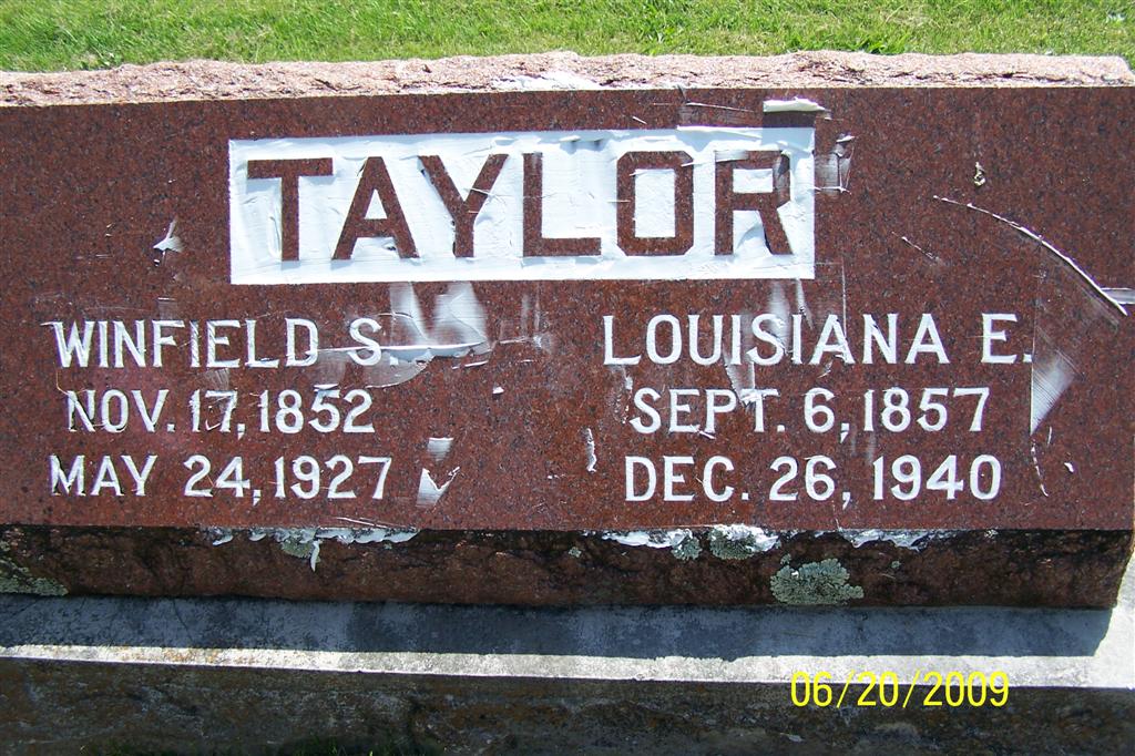 SSW: Louisiana E. - Research Note: His father was George Taylor and his mother Mary Biddleton according to his death certificate. Louisiana Taylor was listed as his wife. G. M. Taylor, Cassville, MO, was the informant. - Cassville Republican, Thursday, May 15, 1919 - Bettie Hutchens of Topeka, Kansas, is visiting her parents, Mr. and Mrs. W. S. Taylor. - Family Photo - Another Photo | Death Certificate Donna Cooper Online Newspapers Phyllis Long Photos BCG and HS |