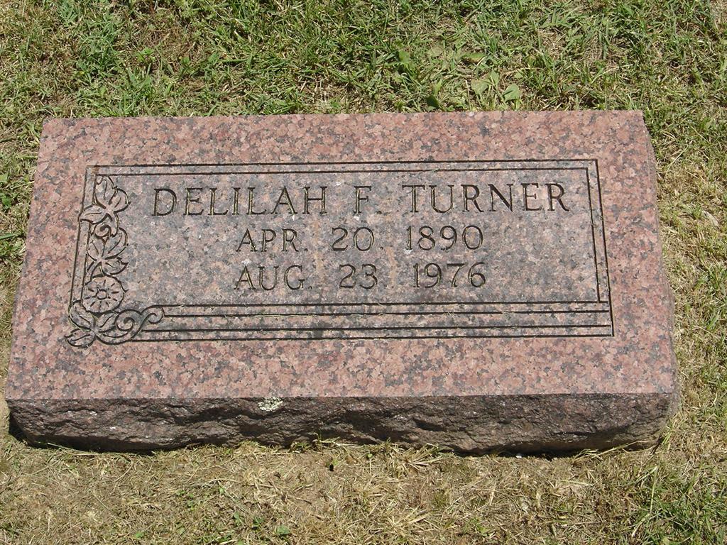 Inscription: "Father" - Research Note: Frank Turner was a son of Theodore Franklin and Mary Hosana (Braziel) Turner. He married Delilah Frances Knee, daughter of George and Mary (Scroggins) Knee. Frank and Delilah had 8 children. Mrs. Bill Wilkerson of Wier, KS was the informant on the death certificate. - Photo of Parents - Another Photo | Note Donna Cooper Death Certificate Phyllis Long Photos BCG and HS |