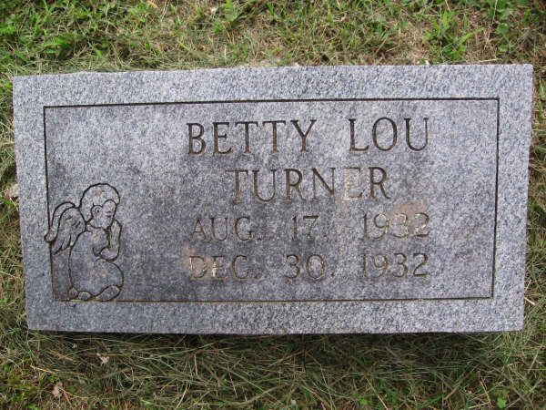Research Note: According to his death certificate he was an infant son of Frank T. Turner, born Rural Springfield, MO, and Delilah Knee, born Barry Co., MO. Stone has birth year as 1934 and death year as 1935. Since the death certificate was filed by an attending physician it would have the correct death date. Burial was given as 1934. | Death Certificate Phyllis Long Photo BCG and HS |