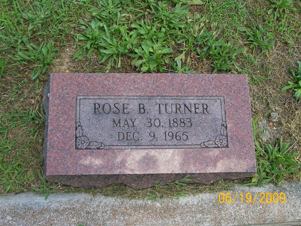Research Note: Her death certificate reads that W. H. Brown and Mary Donnell were her parents. James P. Tuner was her husband. The cause of death was thrombosis. Mrs. Emil Dillinger, Cassville, MO was the informant. - Turner Plot Stone - Turner Plot Stone - Another Photo | Death Certificate Donna Cooper Photo BCG and HS |
