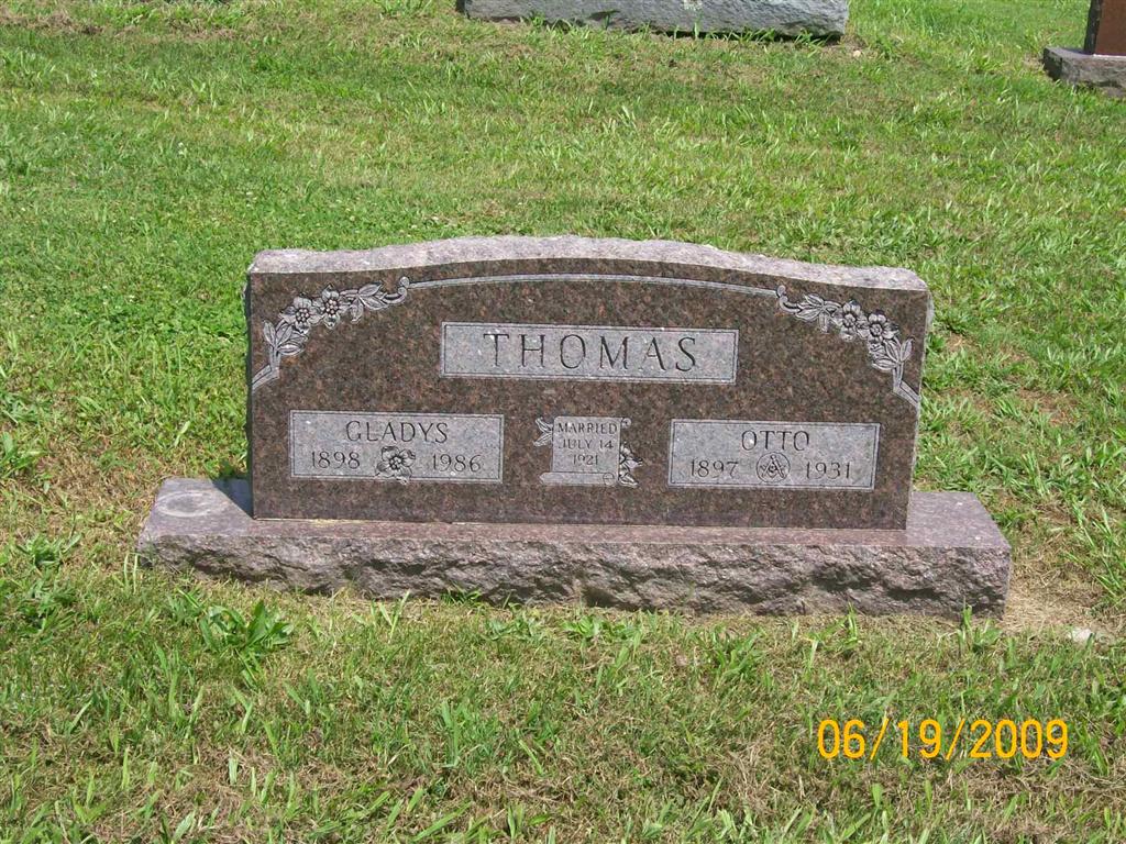 SSW: Flossie O. - Research Note: Masonic emblem on stone. - His death certificate gives his birth year as 1865 and his wife as Flossie Newman. He was a dentist and the son of Otto Thiele and mother's maiden name Johann? Mrs. Toni Thiele of Ironton, MO was the informant. - Cassville Republican, Thursday, August 31, 1893 - Married Friday, August 24th, 1893, at 6:00 pm at the residence of H. W. McCracken. Dr. Otto H. Thiele and Miss Floresa Oleatha (Flossie Ophelia Hailey) Halley, born of Cassville, Rev. E. W. McCracken officiating. Dr. Thiele is well and favorably known as an excellent dentist and since coming to this city has been closely associated with its musical talent, having been a member of the orchestra since its inception, and is a leader of the Cassville Cornett. Miss Hailey is one of the leading society young ladies of Cassville and daughter of ex-sheriff Hailey. She graduated from the Cassville high school in June in the class of '93. The happy couple were the recipients Saturday night of moonlight serenades by the orchestra and cornet band. - Cassville Republican, Nov. 12, 1896 - Died, Nov. 10th, Otto Hailey Thiele, son of Mr. and Mrs. O. H. Thiele, age 21 months of croup. - August 15, 1903, Saturday, Cassville Democrat - Dr. Thiele and family of this city and Silas McQueen and family of the Oliver's Prairie County, spent several days fishing on Flat Creek last week. - Feb. 9, 1911, Thursday, Cassville Republican - Dr. O. H. Thiele, Dave Dingler and H. M. Allen arrived Saturday at 1 o'clock with Dr. Thiele's new auto from Kansas City. The auto is a Ford and a fine looking one. The trip was made from Kansas City to Cassville in a little more than a day and a half. - September 11, 1913, Thursday, Cassville Republican - Dr. O. H. Thiele and daughter Miss Anita, spent Tuesday, at Ft. Smith, Ark. - WW I Letter from son Toni - Photo of Otto and other Lodge Members | Death Certificate Online Newspapers Phyllis Long Photo BCG and HS |