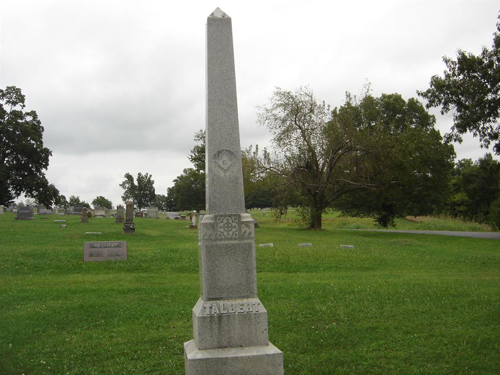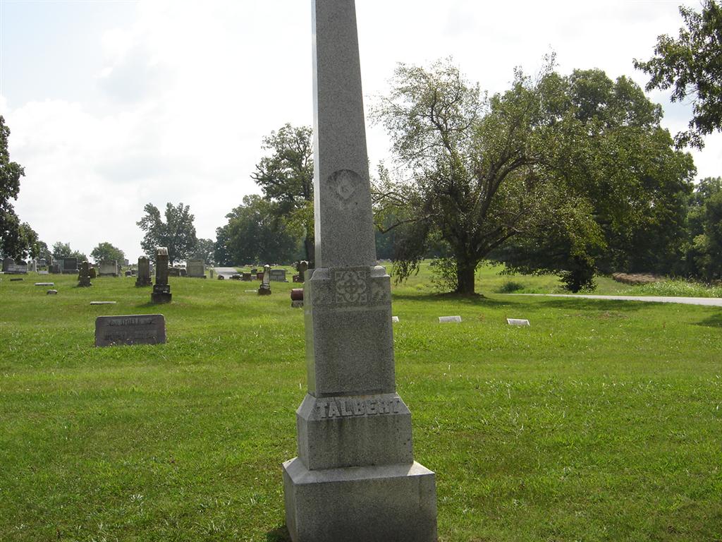 Research Note: Alpheus was the son of Jesse Talbert and Hannah Engle. He married Eliza Jane Carter Dec. 27, 1855 in Hanover, IN. Their children were Francis, Maria, William R., Harrison F., Hannah/Annie, Charles, Harrie and Cordelia Talbert. - April 13, 1911, Thursday, Cassville Republican, Barry Co., MO - The body of Mrs. Eliza Talbert was exhumed Monday and placed in another part of Oak Hill Cemetery. The bodies of her husband, Alpheus Talbert and a son were exhumed at the Quaker Cemetery Tuesday and removed to Oak Hill Cemetery where they were placed in the same lot with the body of Aunt Eliza. | Quaker Meeting Birth Records Census Online Newspapers Phyllis Long |