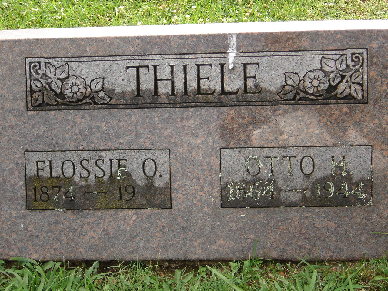 SSW: Otto H. - Research Note: Most likely NOT BURIED HERE. There is no death date on her stone. The death certificate gives her husband as Dr. O. H. Thiele, the next entry. Burial at Arcadia Valley Memorial, Ironton, MO. Daughter of Newton Hailey and Nancy McKinney. Her usual residence was Rockford, Winnebago Co., IL. Flossie's name was given as Flossie Newman on Otto's death certificate which is incorrect. Nursing home records was the informant. Otto H. Thiele, age 28, married Flossie O. Hailey, age 17, on Aug. 25, 1893 in Barry Co., MO. - January 3, 1918, Thursday, Cassville Republican - Dr. and Mrs. O. H. Thiele and daughter, Mrs. Scheldrup, and son, Tony, of Pierce City and Dr. S. A. Newman and family of Mt. Vernon were New Year's day guests of Mr. and Mrs. N. L. Hailey. - Cassville Democrat, May 22, 1920 - Mrs. O. H. Thiele of Pierce City and Mrs. S. A. Newman of Mt. Vernon, have been visiting their parents Mr. and Mrs. N. L. Hailey and relatives. - Mother's Obit | Death Certificate Online Newspapers MO Marriage Records Phyllis Long Photo BCG and HS |