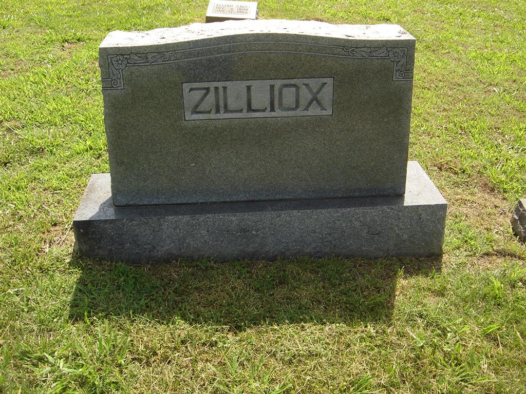 Research Note: He was the son of John Henry Zilliox and Sarah Gertrude Gilmore. - October 24, 1912, Thursday, Cassville Republican - Suburban News: Elijah Zilliox who has had a siege of appendicitis for two weeks is a little better at this writing. We hope he may soon recover. - Zilliox Plot Stone | Census Online Newspapers Phyllis Long Photos BCG and HS |