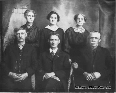 Pictured at left on February 10, 1918 are the children of John Harvey & Achsah (Hobson) Robbins. Back row, from left are: Vena (Robbins) White, Mollie (Robbins) Grimes, and Della (Robbins) Gaskins. Front row from left are: Milus Robbins, Benton Robbins, and Joe Robbins. Submitted by: Norman Smith - Restored Photo by Gary Ball |