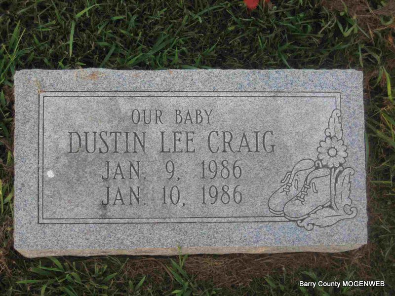| CRAIG, Dustin Lee | Jan. 9, 1986 | Jan. 10, 1986 | Inscription: "Our Baby" - Another Photo | Photo Elmer Thorn Photo Ted Roller |