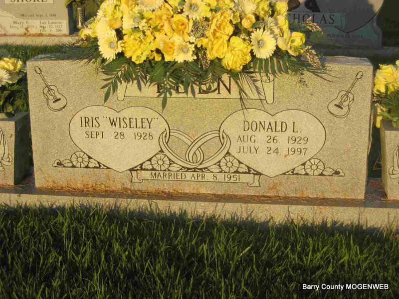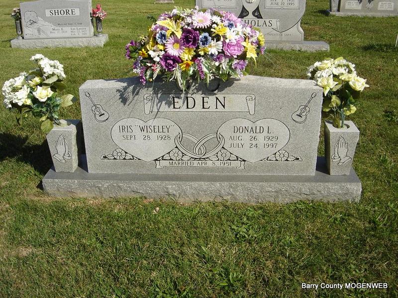 | EDEN, Iris (WISELEY) | Sept. 28, 1928 Rural Jenkins, Barry Co., MO |