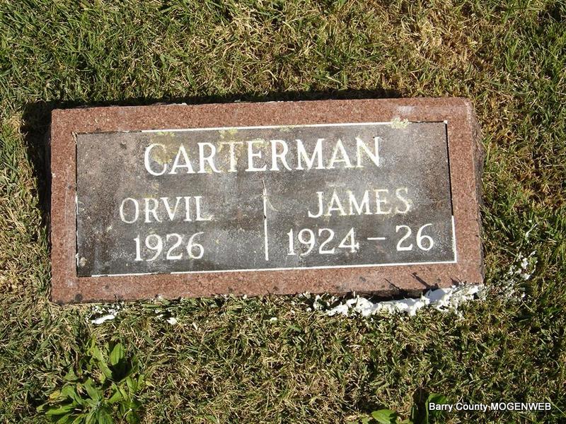 | CARTERMAN, Orvil | No Date | 1926 | SSW: James - Research Note: Son of Andrew J. Carterman born Barry Co., MO and Loral M. Stockton born Barry Co., MO. | Note Phyllis Long Photos Ted Roller |