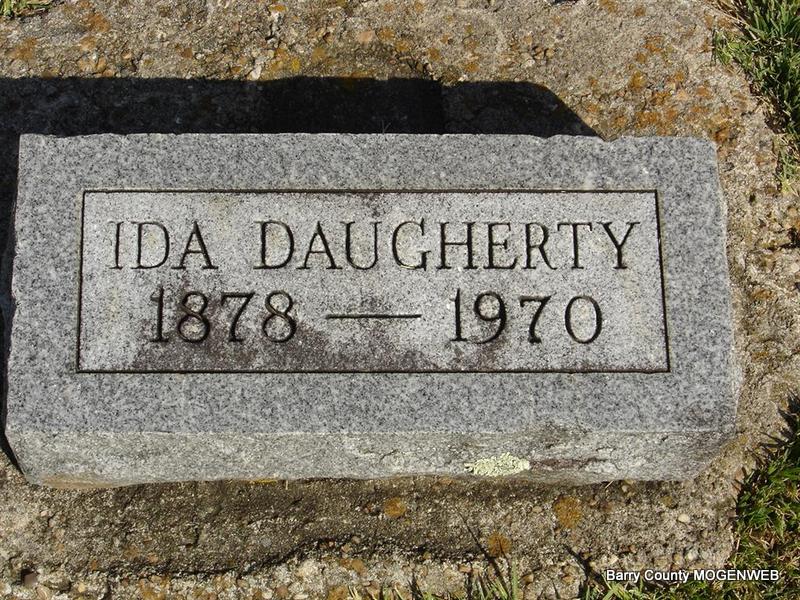 | DAUGHERTY, Ida Anne (WOODS) | May 1, 1878 Christian Co., MO |