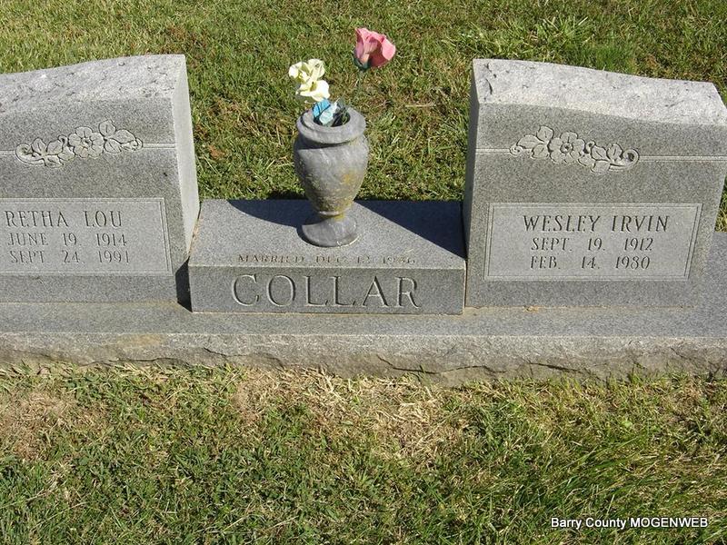 | COLLAR, Wesley Irvin | Sept. 19, 1912 Barry Co., MO |