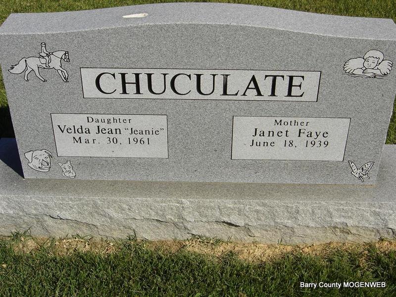 | CHUCULATE, Janet Faye (CONATZER) | June 18, 1939 | No Date | SSW: Velda Jean "Jeanie" - Inscription: "Mother" - Back of stone inscription: "Daughter and Granddaughter of Virgie Reed Contazer" - Research Note: Daughter of Alonzo B. Conatzer and Virgie Reed. - Back of Stone | Census Phyllis Long Photos Ted Roller |