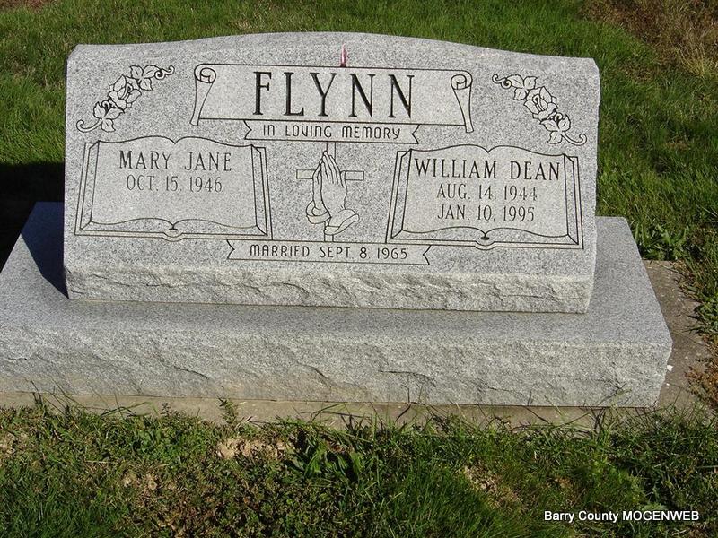 Jan. 10, 1995 | SSW: Mary Jane - Inscription: "Married Sept. 8, 1965" - Research Note: Son of Cecil William Flynn and Lola Yancey. His Social Security data reads that he died Jan. 15th and not the 10th as the stone reads. | Photo Ted Roller Note Phyllis Long |