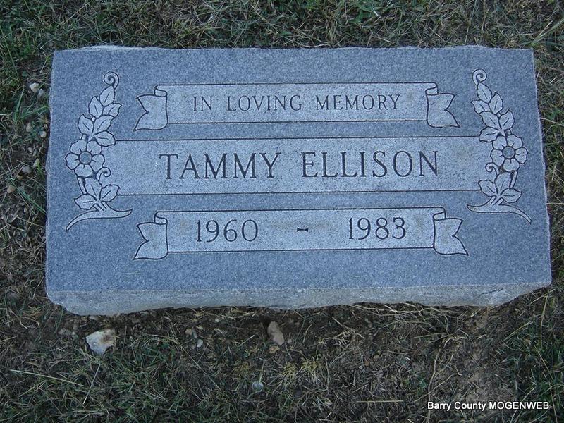 | ELLISON, Tammy | 1960 | 1983 | Inscription: "In Loving Memory" - Research Note: Granddaughter of Fay Emmett Dalton and Martha P. Bush. | Note Phyllis Long Photo Ted Roller |