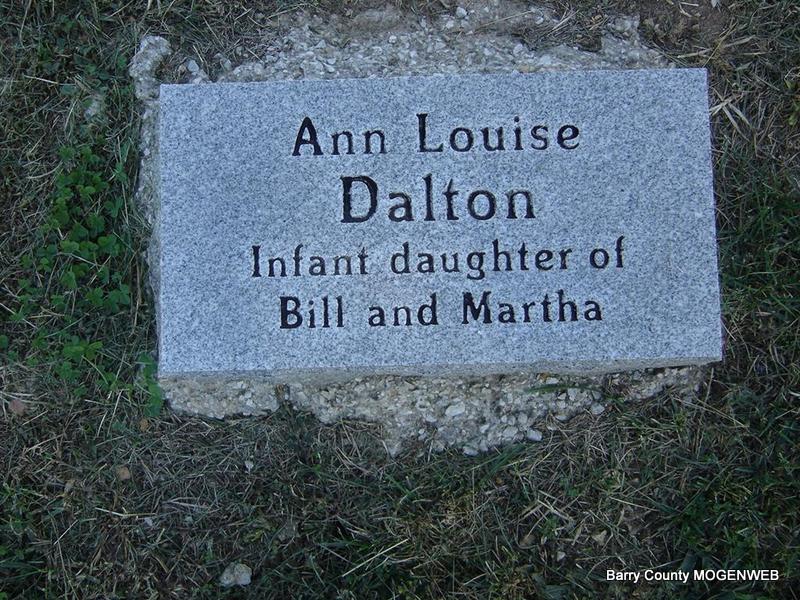 | DALTON, Anna Louise | No Date | No Date | Inscription: "Infant Daughter of Bill and Martha" - Research Note: Daughter of Fay Emmett "Bill" Dalton and Martha Paulina Bush. | Note Phyllis Long Photo Ted Roller |